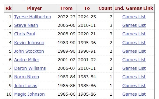 2025-03-16 16:29:07哈利伯顿8次打出20+15助+0失误 比保罗魔术师斯托克顿总和还多