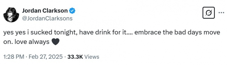 2025-02-27 18:16:0314中1!克拉克森:我今晚太烂了 要拥抱糟糕的岁月 继续前进