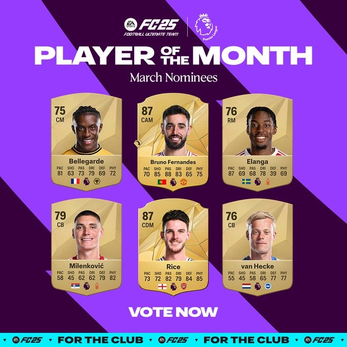 2025-03-27 21:55:52英超3月最佳球员候选:B费2场2球2助、赖斯2场1球领衔