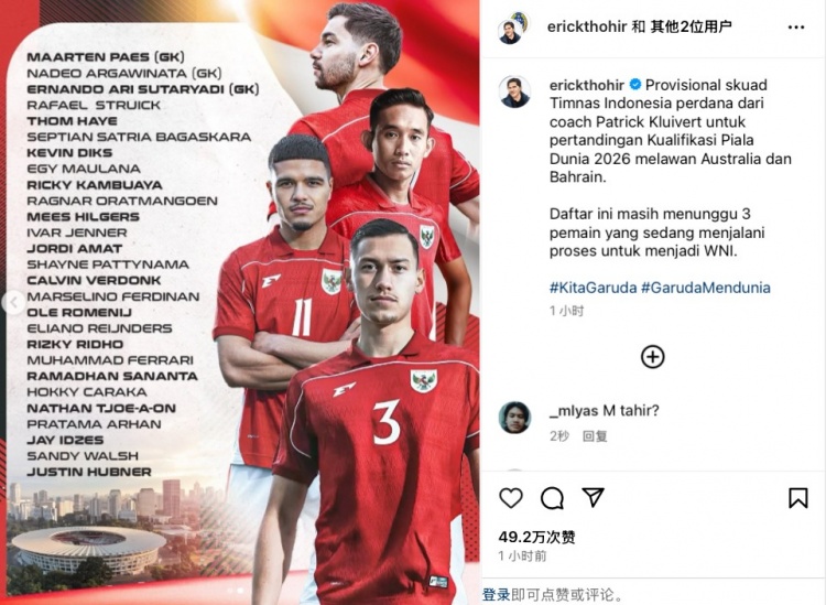 2025-03-09 17:56:41印尼大名单:迪克斯、希尔格斯等归化球员入选,3月份归化暂无缘